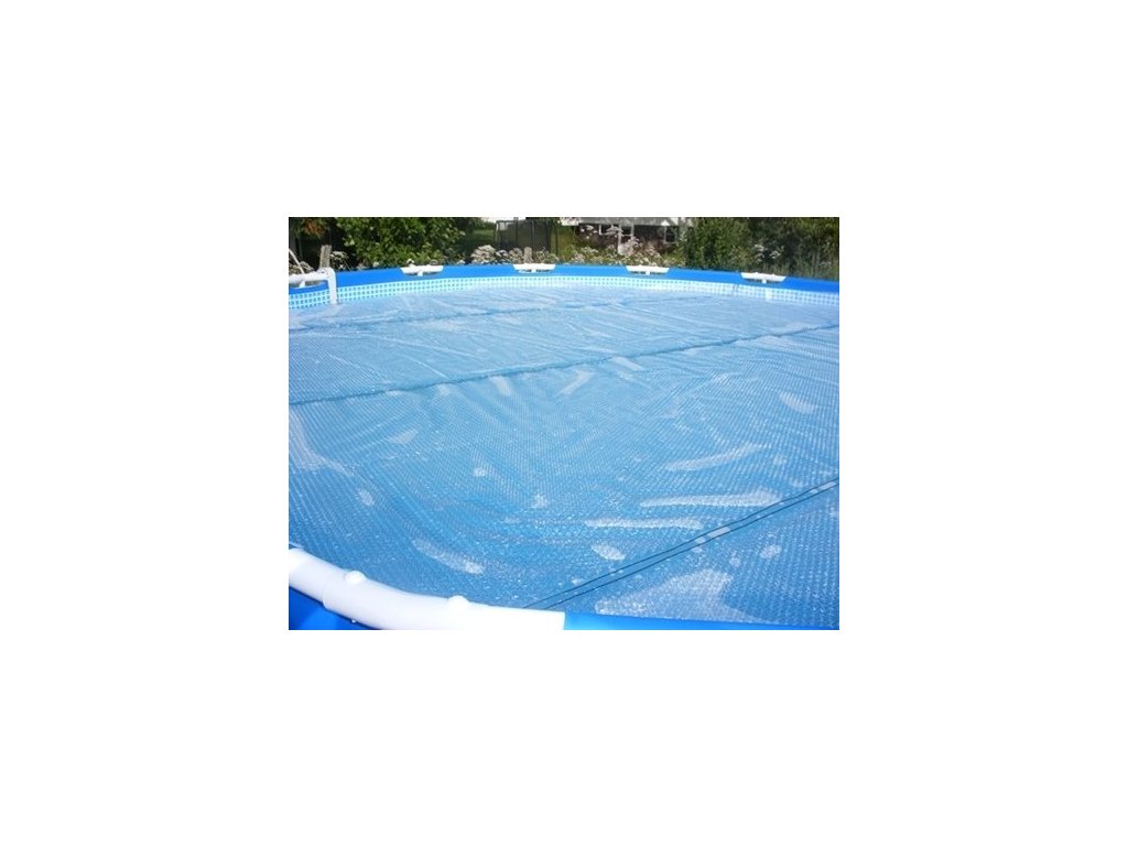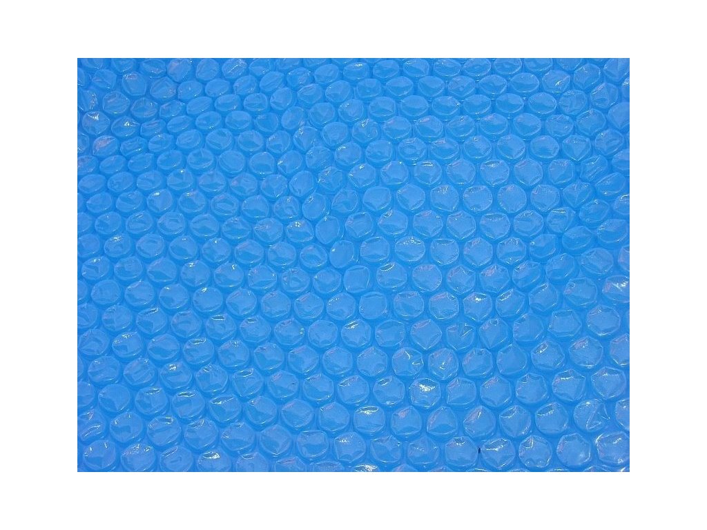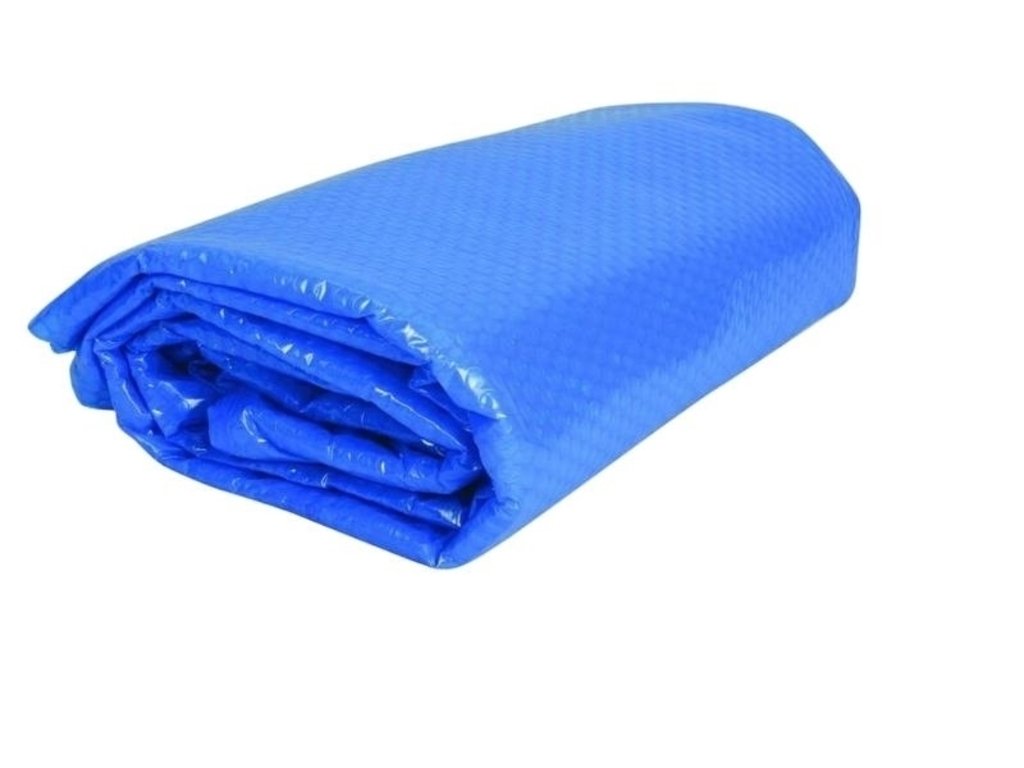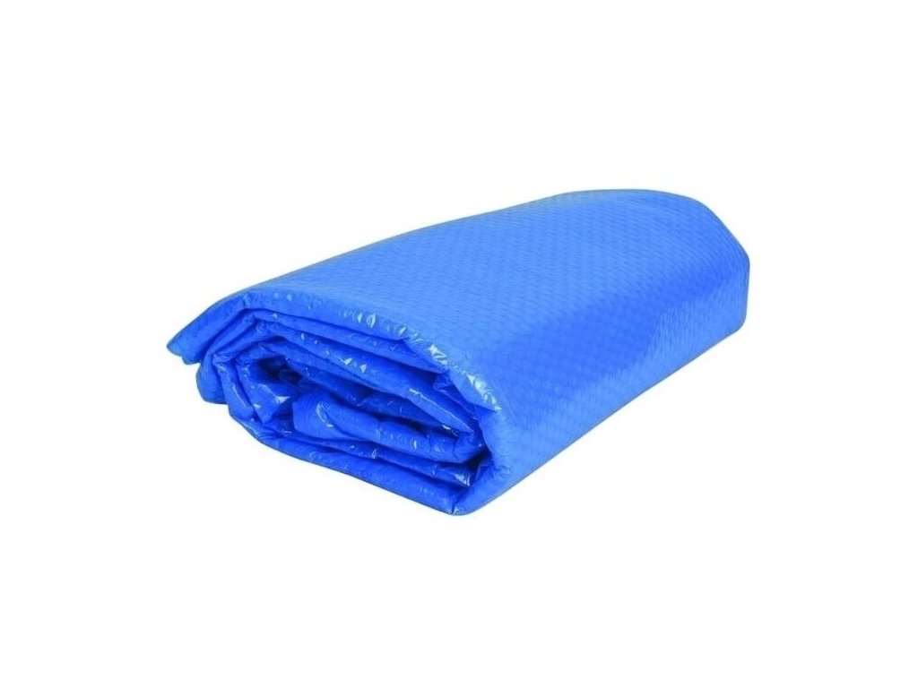 Solární plachta z tepelně izolačního materiálu, pro bazény s vodní hladinou o průměru 4,5 m, bublinky v plachtě fungují jako čočky a ohřívají vodu, plachta zachytává padající nečistoty, zabraňuje odpařování chemikálií. Polyetylen. Modrá barva.