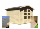 Dřevěný domek, síla stěny 19 mm, rozměry š 213 x d 217 cm, vnější plocha domku 6,55 m2.