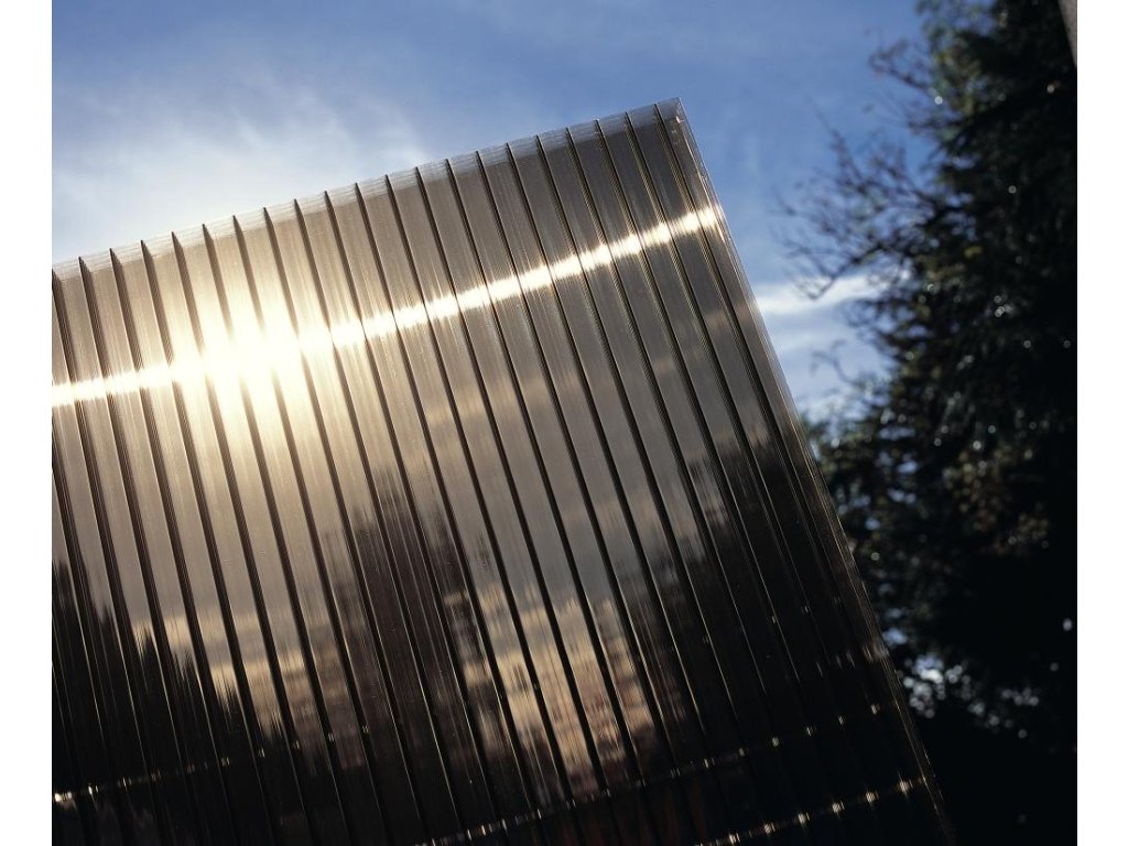 - střecha z KOUŘOVĚ HNĚDÉHO dvoustěnného KOMŮRKOVÉHO polykarbonátu 6 mm