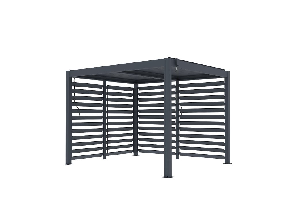 Boční otočná lamelová stěna š 2,5 x v 2,0 m k pergole LANITPLAST BIOCLIMATIC BASIC, ruční nastavování, aretace 0 - 90o.