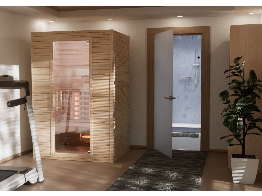 Infrasauna od německého výrobce RORO GmbH, typ MATTERHORN je určena pro 2 osoby a je ideální volbou pro ty, kteří hledají pohodlný a efektivní způsob, jak si užít saunování přímo u sebe doma. Díky svému modernímu a univerzálnímu designu se hodí do jakéhokoli prostoru – ať už v bytě nebo v rodinném domě. Sauna je vyrobena z kvalitního smrkového dřeva, což jí zajišťuje nejen skvělý vzhled, ale i dlouhou životnost a odolnost. Tato infrasauna je navržena tak, aby byla snadno ovladatelná a vyžadovala minimální údržbu. S technologií, která zaručuje rovnoměrné rozložení tepla a možnost nastavení teploty, si užijete intenzivní prohřátí těla a podpoříte krevní oběh. Je skvělým řešením pro ty, kteří chtějí zlepšit svou fyzickou kondici a zároveň si dopřát chvíle pohody a relaxace. Pravidelný pobyt v infrasauně má pozitivní účinky na zdraví – pomáhá zmírnit bolest, zlepšuje flexibilitu kloubů, zvyšuje prokrvení a má protizánětlivý účinek. Navíc může zlepšit vaši psychickou pohodu, snížit svalové napětí a podpořit kardiovaskulární systém. Infrasauna je skvělé řešení i pro ty, kdo nemohou využívat klasickou saunu kvůli zdravotním problémům. Díky jednoduchému ovládání a efektivnímu využití prostoru je infrasauna RORO MATTERHORN skvělou volbou pro každého, kdo chce snadno a pohodlně využívat výhody saunování bez složitých příprav.