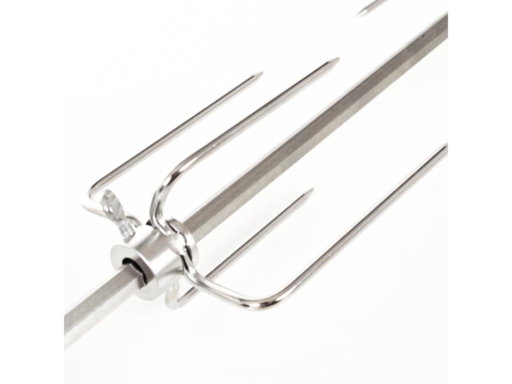 Grilovací jehla s motorem je vyrobena z nerezové oceli a z obou stran je opatřena čtyřmi jehlicemi s aretačními šrouby, díky kterým si můžete jehlice nastavit podle vlastní potřeby.