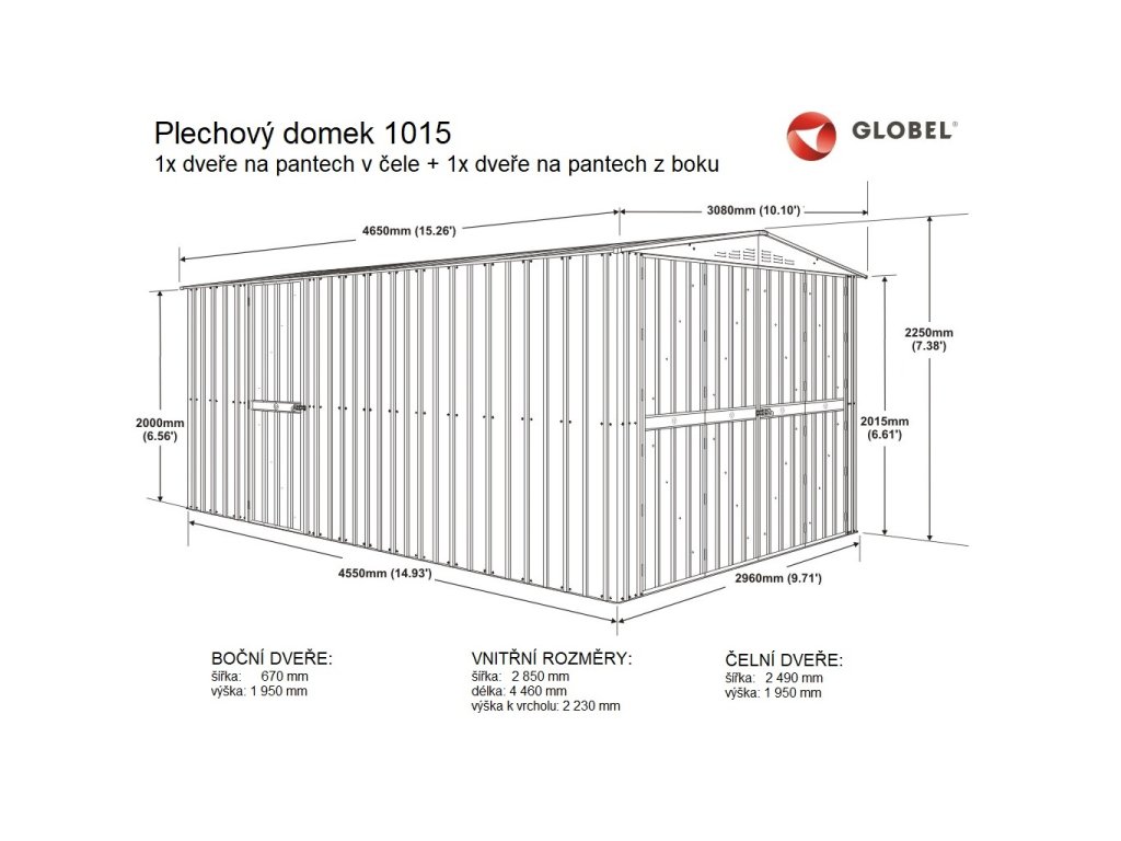 - vnitřní rozměry š 285 x d 446 (hloubka) x v 223 cm
