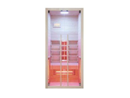Infrasauna pro 1 osobu, 113x102x198 cm, 5x magnéziový zářič, dřevo - smrk, regulace teploty a času, LED terapie.