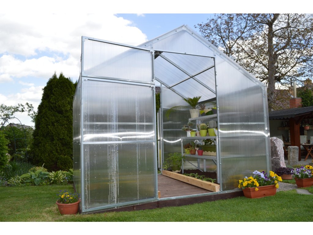 Velmi robustní konstrukce, 100% spolehlivost a jednoduchá montáž. Tento masivní ocelový skleník je určen pro zákazníky, kteří chtějí mít klidné spaní i při dnešním nejistém počasí. Skleník LANITPLAST DOMIK má rozteč nosných profilů 100 cm od sebe + nadstandardní podpěry pro polykarbonát ve střeše i v bočních stěnách. Skleník je vyrobený z galvanicky pozinkované ocelové obdélníkové trubky průřezu 40 x 20 mm o síle stěny 0,85 - 1,05 mm. Obě čela skleníku jsou opatřena jednokřídlými dvoudílnými dveřmi na pantech, kdy horní (menší) křídlo je možné použít jako ventilační okénko. Skleník je průchozí.
