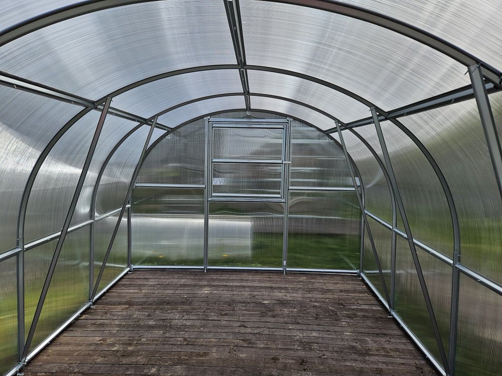 obloukový skleník LANITPLAST TIBERUS | pozinkovaný ocelový profil 1mm, rozteč oblouků 100 cm, dvojité dveře vpředu, ventilační okno vzadu, prosklení nutno vyřezat z dodaných polykarbonátových desek, možnost montáže střešního okna - ano |