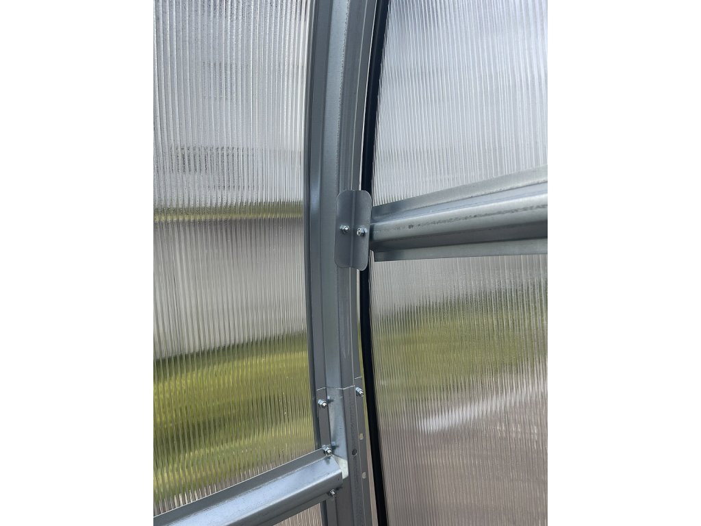 Tento model skleníku obsahuje ocelové vodorovné spojovací lišty na plastové prosklení, takže polykarbonátové desky jsou dodávané už předřezáné na menší formáty (max. 1,05 x 2 m) a zabalené v kartonu. Z těchto menších formátů lze už velice jednoduše dořezat potřebné zaoblené dílce pro opláštění. Nemusíte tak složitě manipulovat s celými velkými polykarbonátovými deskami. Skleník lze i mnohem jednodušeji uskladnit. DOPORUČUJEME!