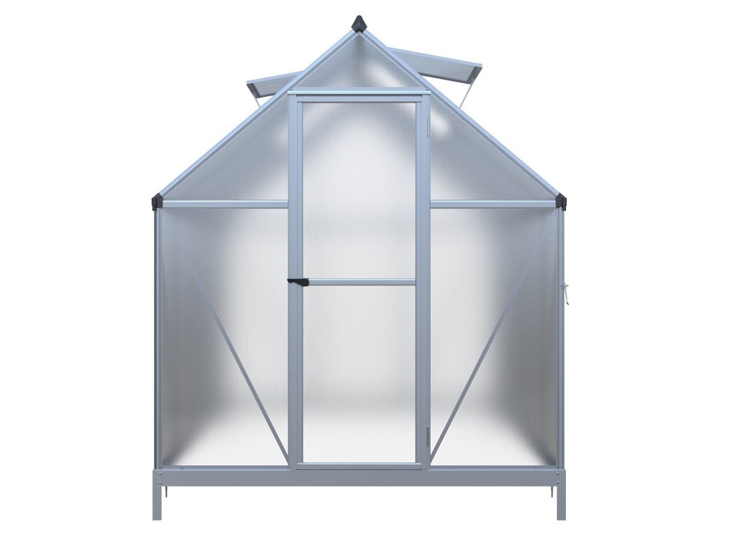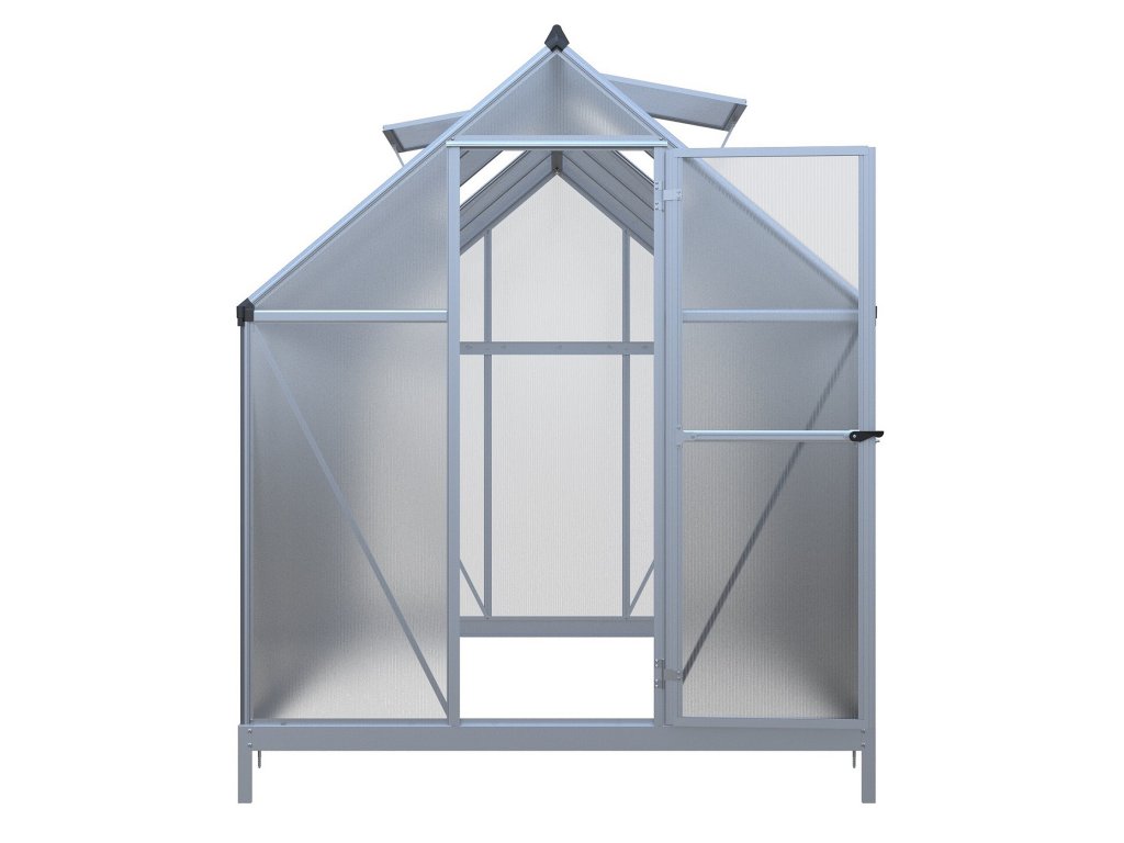 Obsahem balení jsou jednokřídlé dveře na pantech (š x v otvoru = 0,58 x 1,65 m), AL profily, prosklení, pozinkovaná ocelová základna, 2x střešní ventilační okénko s manuálním otevíráním, veškerý spojovací materiál. Ke skleníku je možné dokoupit řadu nadstandardního příslušenství - regály, automatické otvírače, teploměry, vlhkoměry, zavlažovací zařízení, elektrické odporové vytápění půdy.