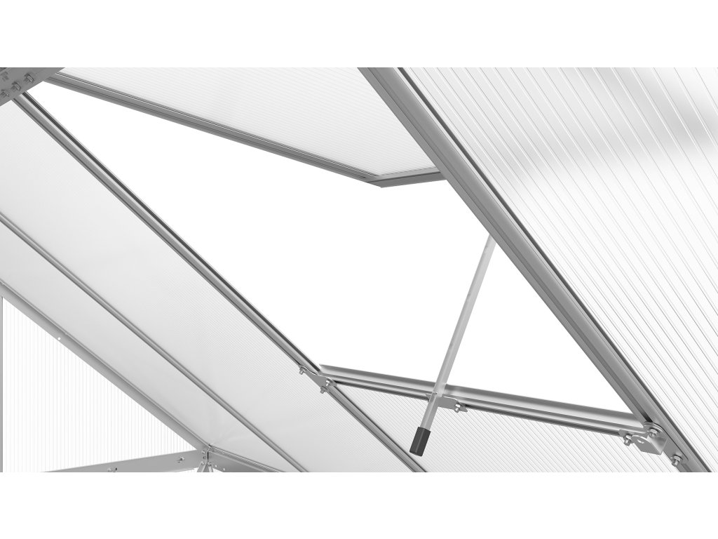 Skleníky řady SARANA jsou jedny z nejprodávanějších modelů značkových skleníků LANIT PLAST. Rámová konstrukce je vyrobena z eloxovaných hliníkových profilů, které zaručují dlouhou životnost a vysokou odolnost. Prosklení tvoří dvoustěnné komůrkové polykarbonátové desky o tloušťce 4 mm, které poskytují vynikající tepelně-izolační vlastnosti a optimální ochranu proti UV záření. Desky jsou pevně uchyceny do plochých i rohových H-profilů, čímž je zajištěna maximální stabilita a odolnost celé konstrukce. Skleník je dále vybaven uzavřenými bočními hranami polykarbonátu, které přispívají k jeho dlouhodobé trvanlivosti. Hlavní předností modelu jsou zesílené nosné profily, které výrazně zvyšují jeho pevnost a odolnost vůči povětrnostním podmínkám, jako je silný vítr a sněhové zatížení.