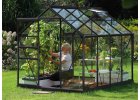 Hliníkový skleník, š 1,95 x d 2,57 m, černá barva, 1x stř. okno, kalené čiré sklo 3 mm, plocha 5,01 m2.