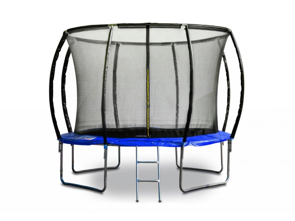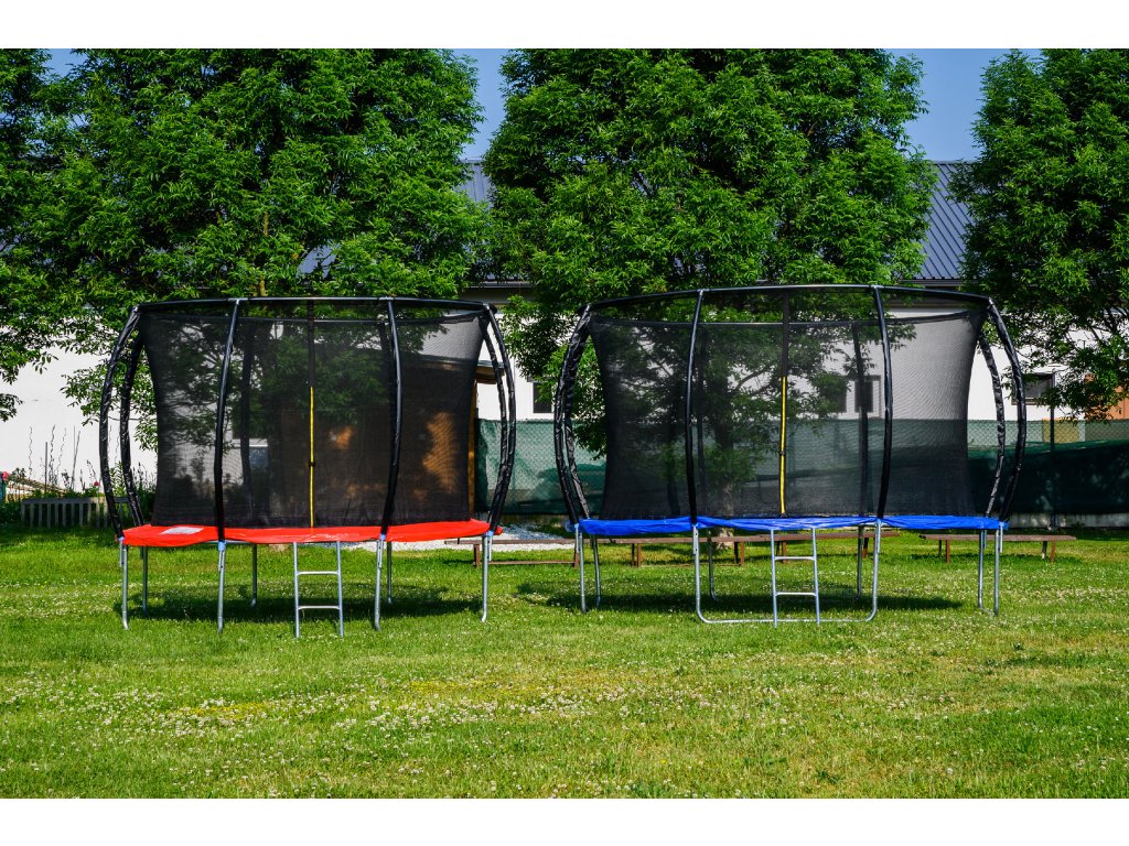 - Ochranná síť trampolíny je z vnitřní strany konstrukce, skákání na trampolíně je tak bezpečnější