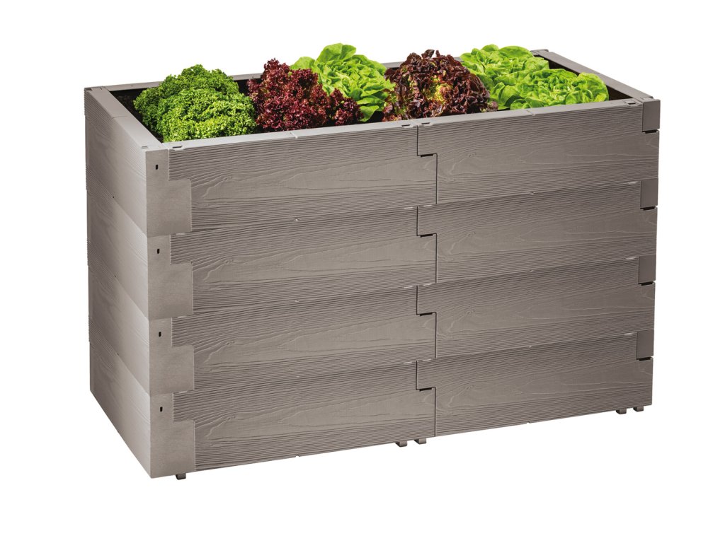 Jedno patro záhonu JUWEL TIMBER. Patro je složeno ze 6-ti "kamenů" a je možné ho využít jako nižší vyvýšený záhon. Záhon je možné nastavovat další vrstvou "kamenů". Vyvýšený záhon JUWEL TIMBER je možné v chladnějším počasí zakrýt pařeništěm JUWEL BIO-PROTECT 130/60 (příplatkové příslušenství). JUWEL TIMBER nemá pevné dno.